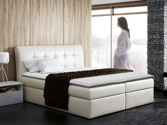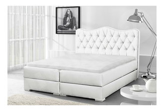 Boxspring postel 140 cm Clady (bílá ekokůže) (s úložným prostorem)