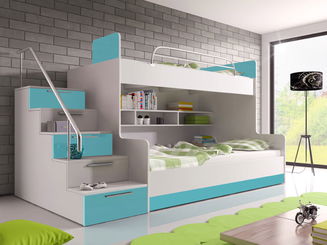 Při nedostatku prostoru si všímejte úložných prostorů postelí nebo vybírejte z nabídky dvoupatrové postele, pod kterými se nachází pracovní část s PC stolkem nebo skříňkami. K posteli vede žebřík nebo minischodiště, které může být využito i jako komoda se šuplíky. Takový systém je vhodný pro jedno dítě, které je školou povinné. Vytvoříte mu tak prostor pro učení a hraní.
