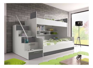 Patrová postel Paralia II (bílá + lesk bílý + lesk šedý) (L)