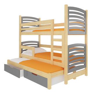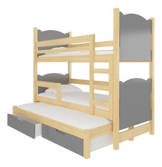 Patrová dětská postel 180x75 cm Marryann (s roštem a matrací) (borovice + šedá)