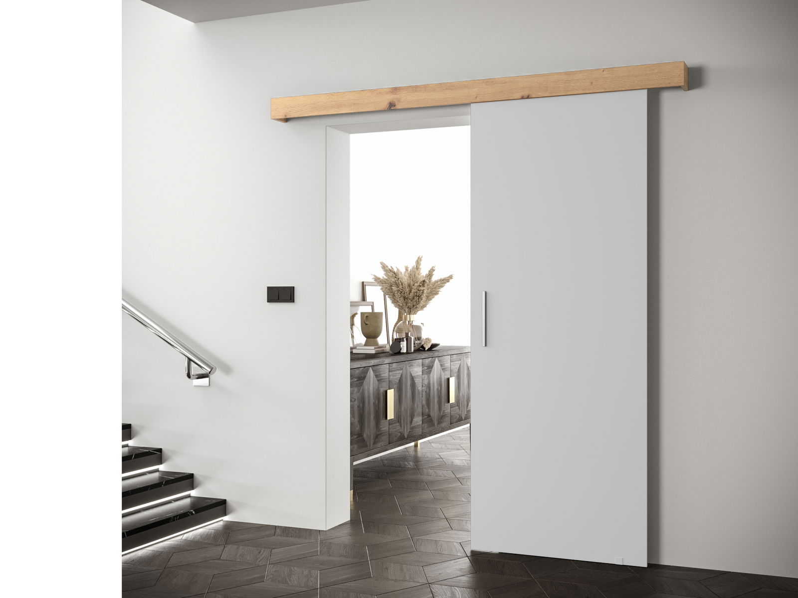 Posuvné dveře 90 cm Sharlene I (bílá matná + dub artisan + stříbrná)