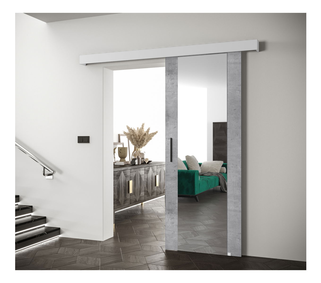 Posuvné dveře 90 cm Sharlene II (beton světlý + bílá matná + černá) (se zrcadlem)