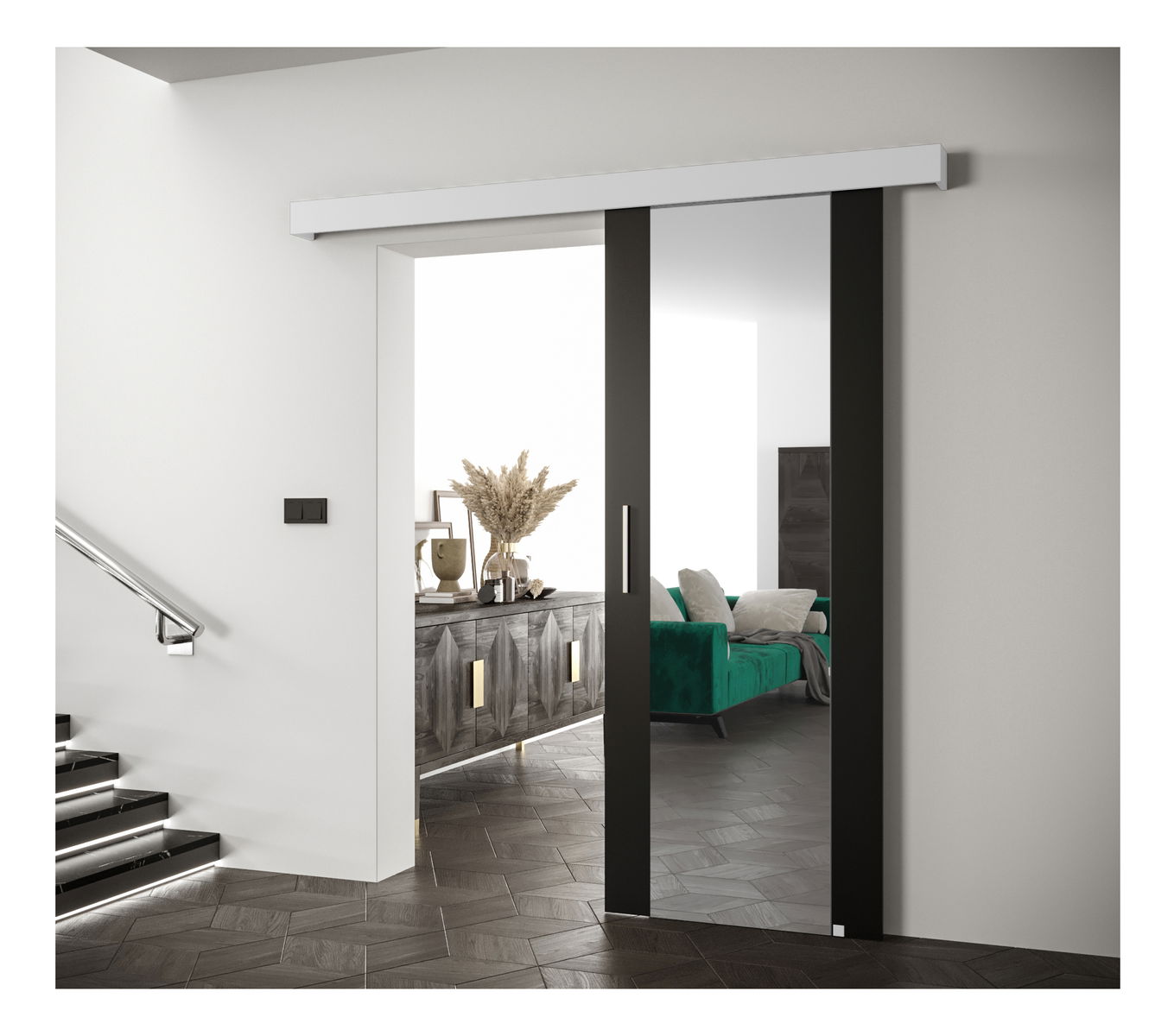 Posuvné dveře 90 cm Sharlene II (černá matná + bílá matná + stříbrná) (se zrcadlem)