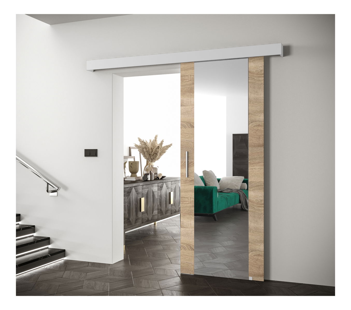 Posuvné dveře 90 cm Sharlene II (dub sonoma + bílá matná + stříbrná) (se zrcadlem)