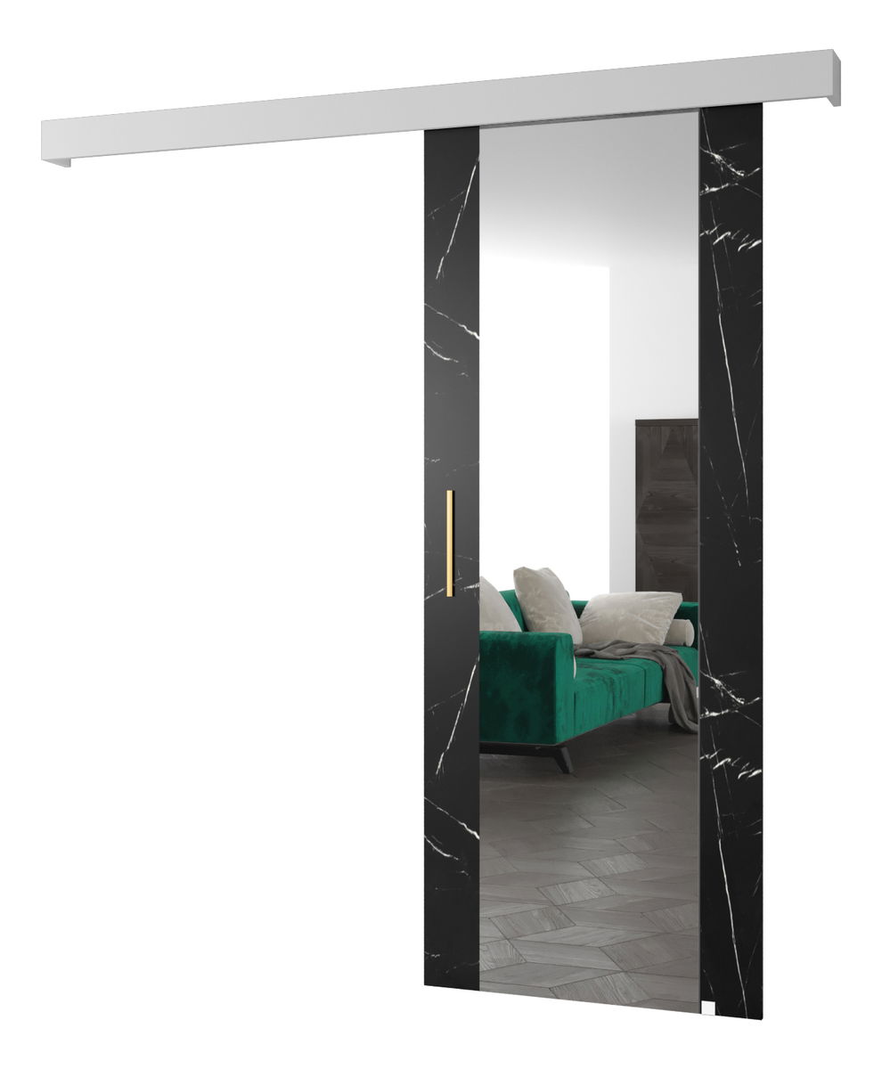 Posuvné dveře 90 cm Sharlene II (mramor černý + bílá matná + zlatá) (se zrcadlem)