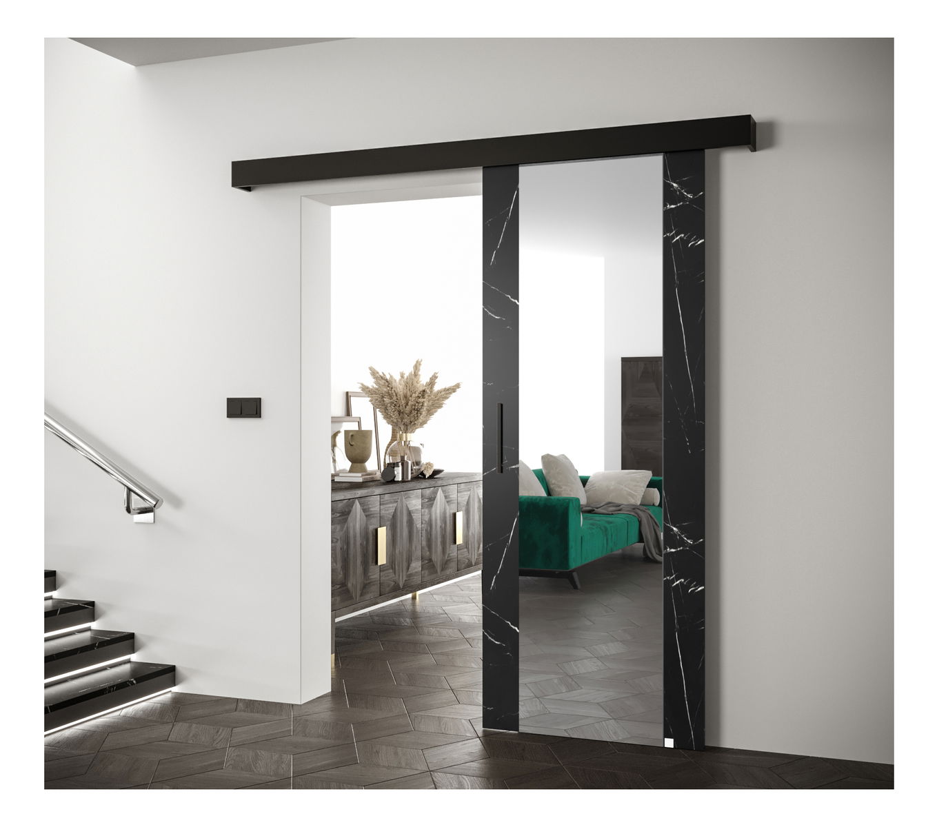 Posuvné dveře 90 cm Sharlene II (mramor černý + černá matná + černá) (se zrcadlem)