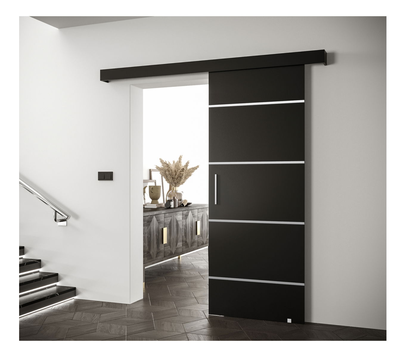 Posuvné dveře 90 cm Sharlene IV (černá matná + černá matná + stříbrná)
