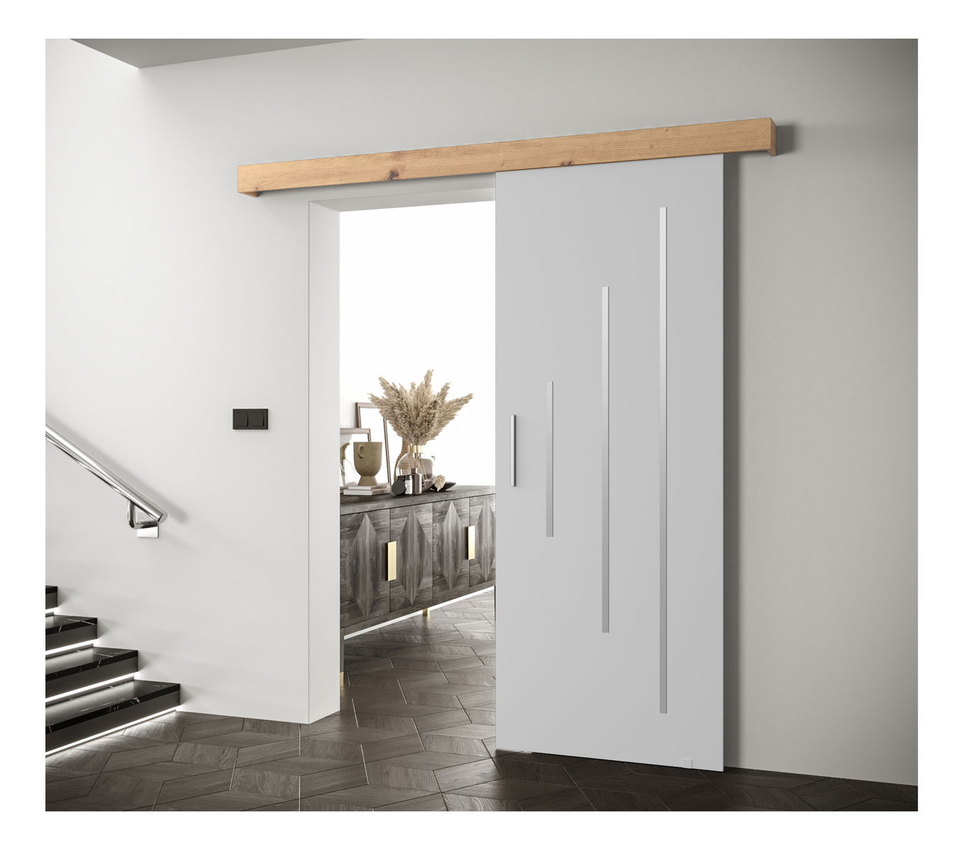 Posuvné dveře 90 cm Sharlene Y (bílá matná + dub artisan + stříbrná)