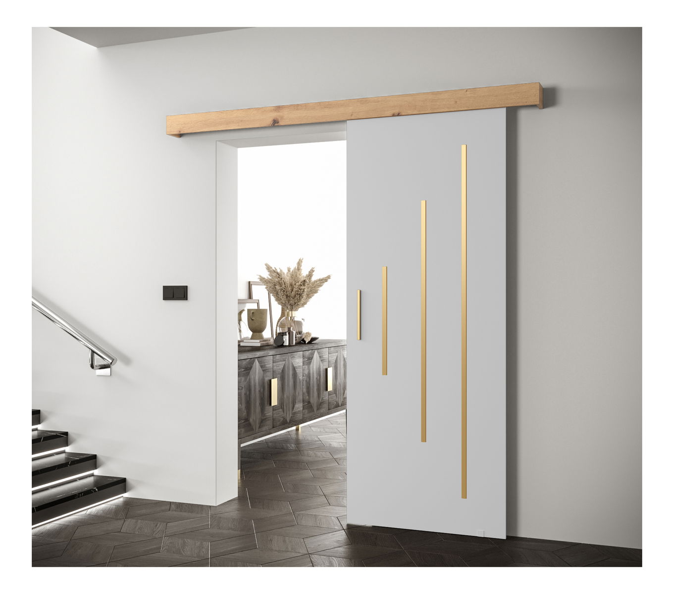 Posuvné dveře 90 cm Sharlene Y (bílá matná + dub artisan + zlatá)