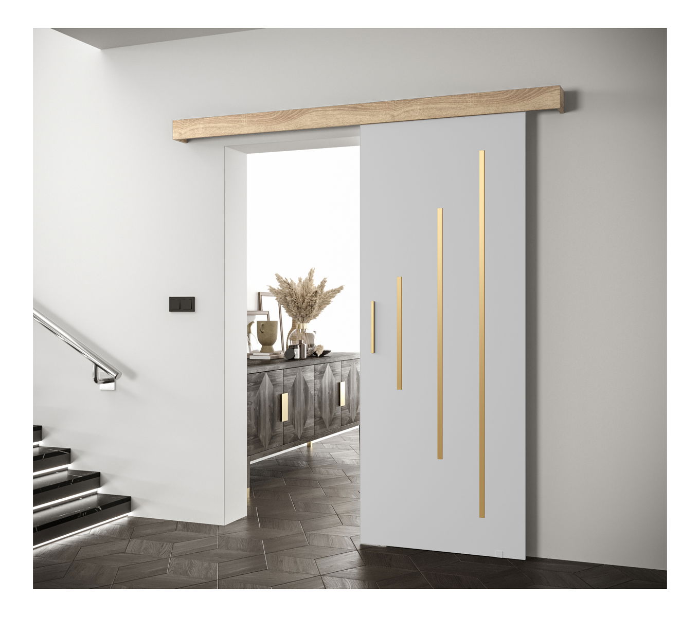 Posuvné dveře 90 cm Sharlene Y (bílá matná + dub sonoma + zlatá)