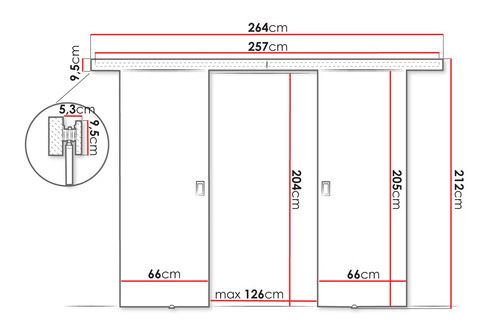 Poznámka: prezentované posuvné dveře by se neměly montovat na sádrokartonovou stěnu