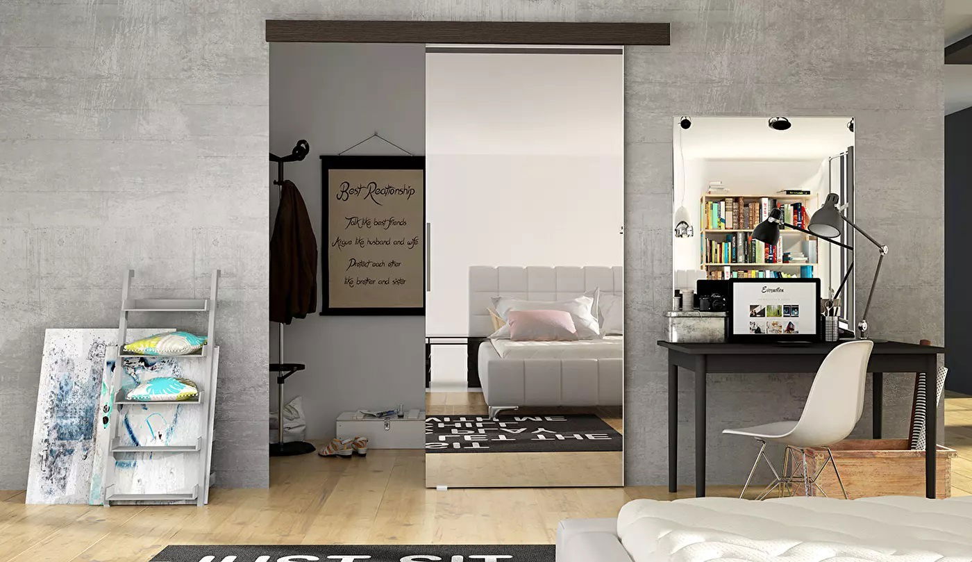 Posuvné dveře jsou dokonalým a jednoduchým řešením, které se hodí pro úsporu místa v chodbě, v ložnici, obývacím pokoji a dětském pokoji. Efektivním způsobem oddělí jednu místnost od druhé, což opticky zvětší samotný interiér. Pomocí těchto dveří můžete za nimi vytvořit efektivní a funkční šatník s mnoha policemi a tyčemi na šaty. Tento systém posuvných dveří má rozměry 86 cm x 205 cm a podélném vedení 205 cm.