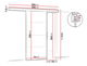 křídlo dveří se posouvá na kolejničce namontované nad otvorem dveří pod fasádou,