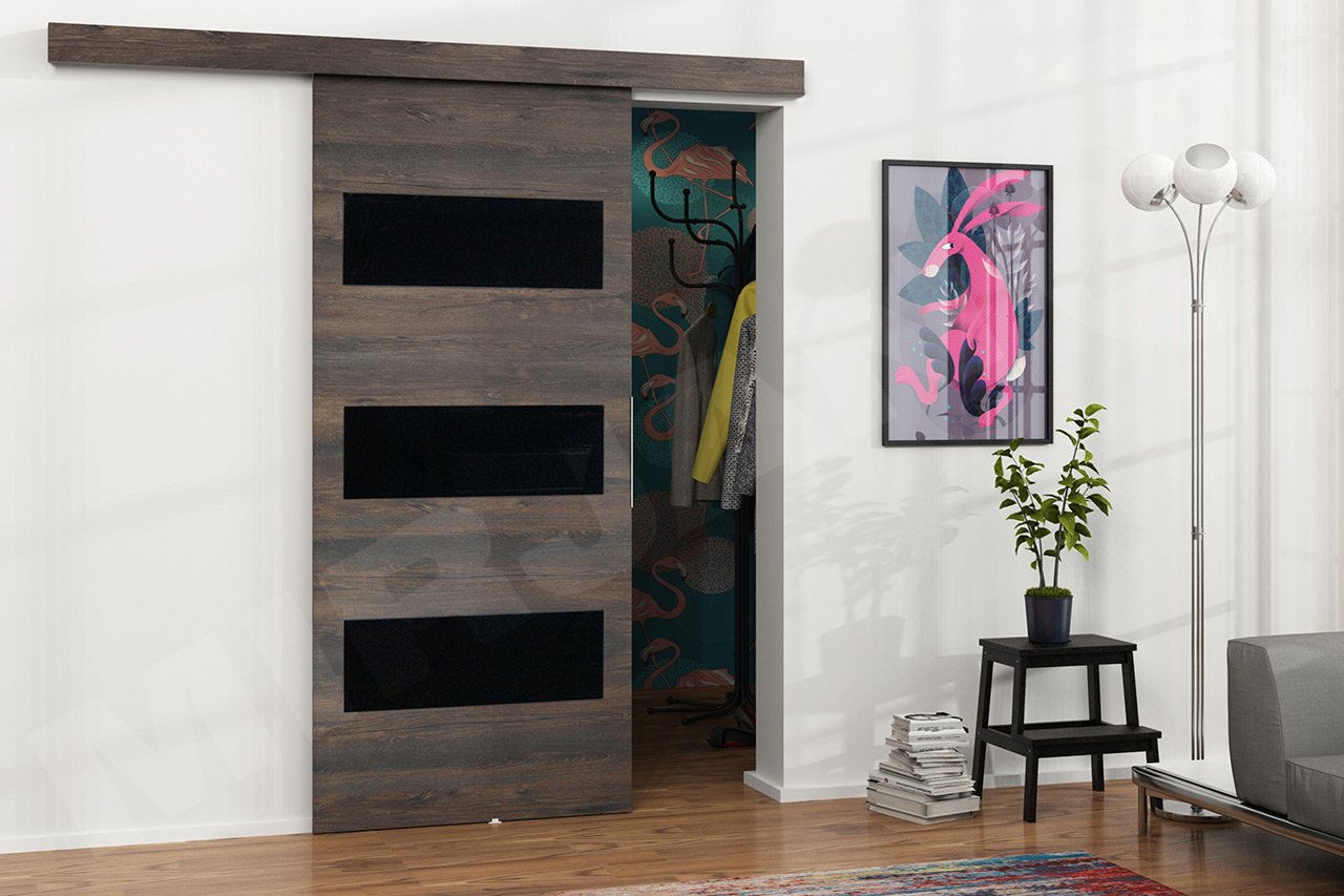 Posuvné dveře Meralia II 100 (jasan tmavá + jasan tmavá + černý lacobel)