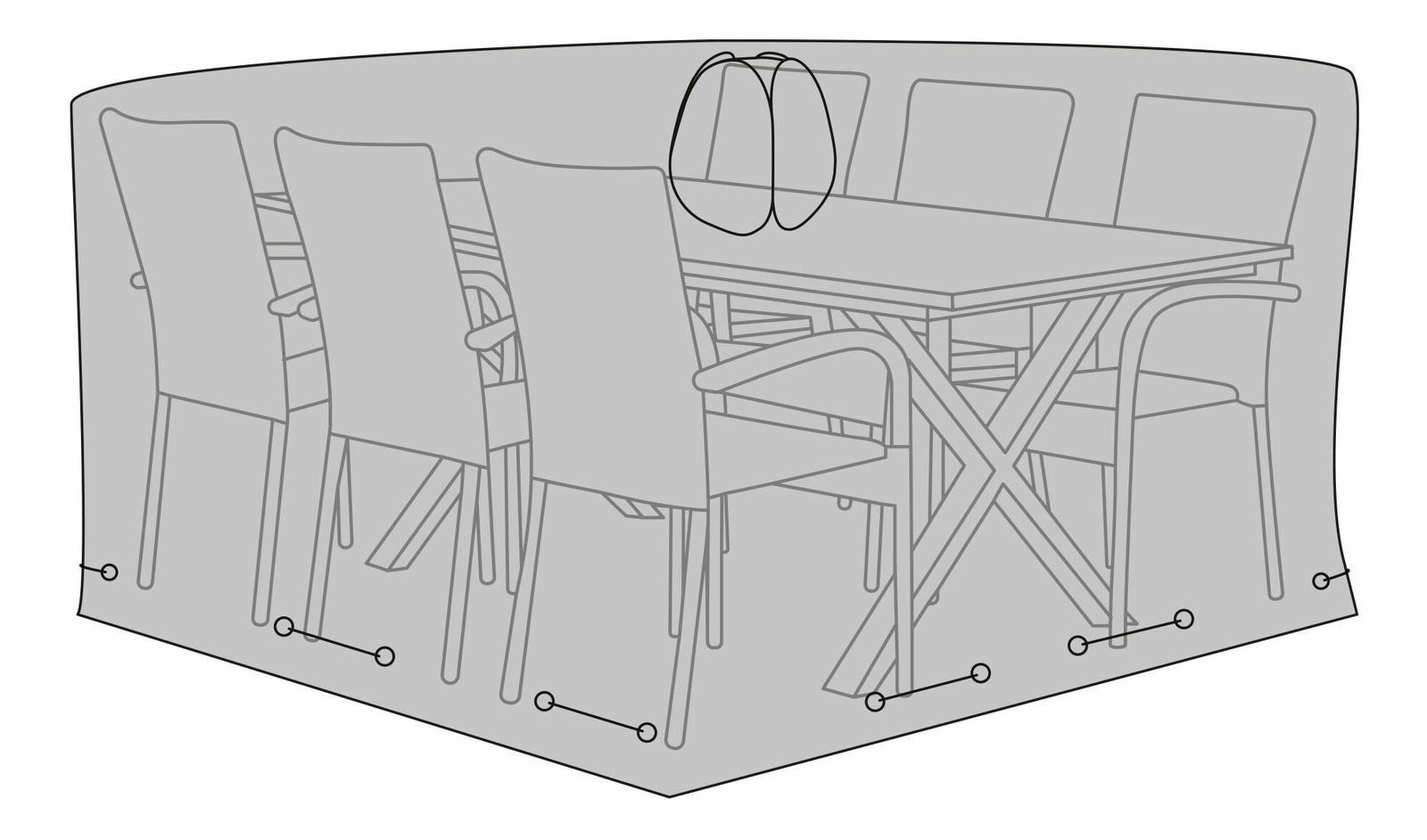 Luxusní potah na stůl se 6 židlemi, 210g/m2 600D polyester s PU zátěrem, voděodolný, černý