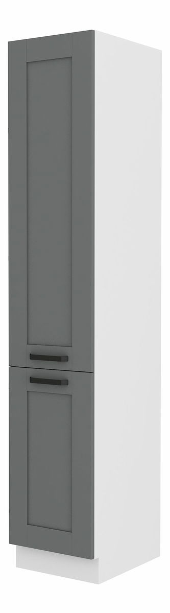 Potravinová kuchyňská skříň Lucid 40 DK 210 2F (dustgrey + bílá) s výškou 210 cm a hloubkou 57 cm je ideálním místem pro uchování surovin, které nepotřebují chlad. Její moderní styl se skvěle hodí do každé kuchyně. 16 mm) v bílé barvě a přední desky jsou z MDF desky (16 mm) v barvě dustgrey. Skříň obsahuje kovové úchyty (192 mm) a má také systém tichého zavírání. další varianty skříněk a regálů, takže si můžete sestavit vaši kuchyni snů s rustikálním designem a moderními prvky.