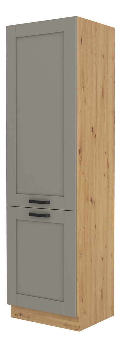 Potravinová kuchyňská skříň Lucid 60 LO 210 2F (dub artisan + claygrey) výška 210 cm hloubka 57 cm je moderním doplňkem pro váš domácí interiér Tato skříň byla navržena speciálně pro uskladnění potravin v chladničce, díky čemuž si v kuchyni udrží. jehož je skříň vyrobena, zaručuje její vysokou kvalitu a dlouhou životnost. Skříň má korpus z dřevotřísky laminované v dub artisan provedení a přední dveře jsou z MDF desky claygrey barvy. svým rozměrem a modernímu designu je tato kuchyňská skříň ideálním doplňkem pro každou moderně zařízenou kuchyni Pokud hledáte komplexní řešení pro svou kuchyni, v nabídce naleznete i další varianty skříněk a regálů, abyste si mohli sestavit kuchyni svých snů.