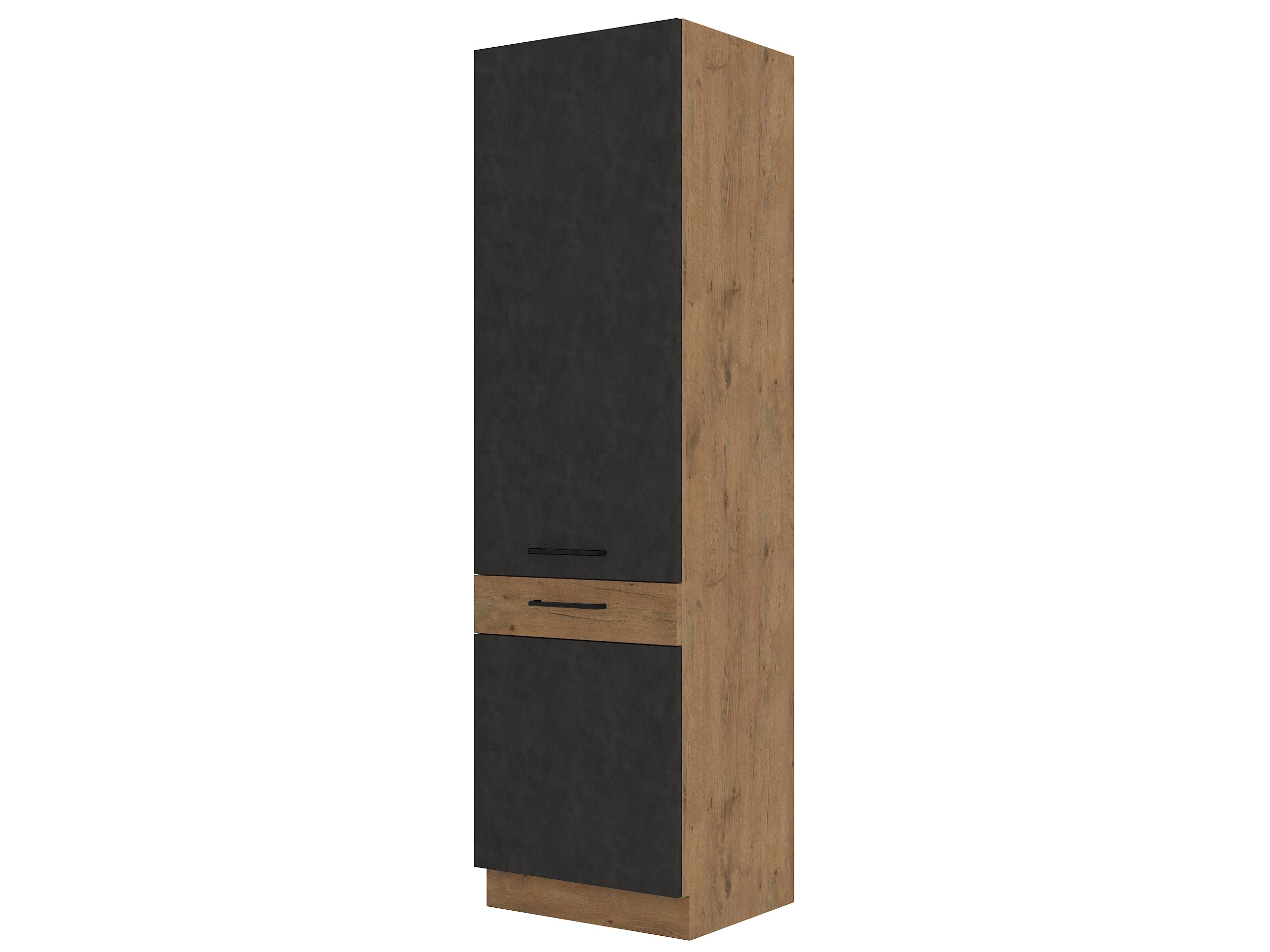 Potravinová kuchyňská skříň Virion 60 DK 210 2F s dubovou dekorací Lancelot a šedými dvířky je ideálním doplňkem každé moderní kuchyně. Vysoká 210 cm, široká 60 cm a hluboká 57 cm, nabízí dost místa pro potraviny a kuchyňské pomůcky. Kuchyňská sestava nabízí mnoho různých designových variant, které umožňují vytvořit vlastní jedinečný design kuchyně. Korpus je vyroben z dřevotřísky laminovaného materiálu a přední stěna z MDF o tloušťce 16 mm. Skříňka má plastové úchyty o délce 192 mm a otevírání dvířek je univerzální. Vnitřek skříňky je v barvě bílá a má vyvrtané otvory pro rukojeť.