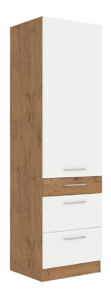 Potravinová kuchyňská skříňka 60 DKS-210 3S 1F Velaga (lesk bílý + dub lancelot)