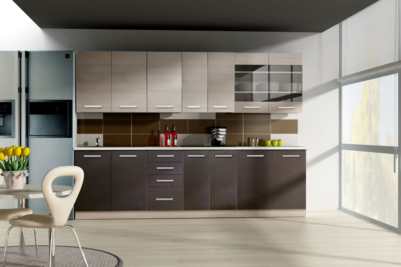 Staňte se pro tuto chvíli architektem a designér vlastní kuchyně. Nabízíme vám směs designových skříněk v barvě tmavého dřeva v kombinaci dubu Ferara. Výběr je na vás a na vaší fantazii.
