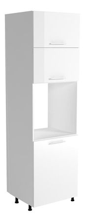 Potravinová kuchyňská skříňka na troubu Verlene DP-60/214 o výšce 214 cm a hloubce 56 cm má bílý korpus a lesklá bílá přední dvířka. Tato kuchyňská skříň na troubu se třemi dvířky je součástí moderního kuchyňského setu Vento. Vysoký lesk předních dvířek dodává kuchyni světlo a jas. Dvířka jsou vyrobena z kvalitní MDF desky a korpus z DTD laminované desky, což zaručuje trvanlivost a dlouhou životnost. Kuchyňská skříň má chromované úchyty dlouhé 12,8 cm a díky svým rozměrům poskytuje dostatek úložného prostoru pro potraviny a kuchyňské náčiní. S touto kuchyňskou skříňkou si můžete zařídit svou kuchyni dle vašeho vkusu a potřeb, aby byla nejen praktická, ale také vkusná a moderní.