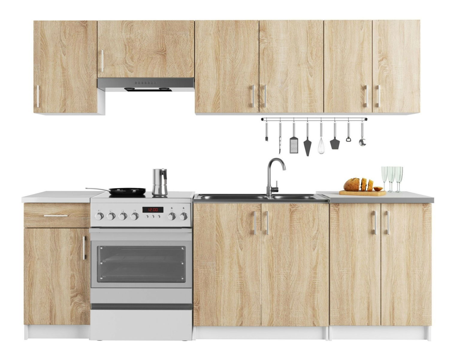Kuchyňská skříňka je jedním ze základních kusů nábytku, který umožňuje odkládání nádobí a potravinářských výrobků. Má se vyznačovat pevnou konstrukcí, odolným zpracováním z materiálů odolných vůči poškození a funkčností. Tyto vlastnosti spojuje kuchyňská skříňka z kolekce Lula. Jedná se o návrh, který umožní vytvořit moderní a zároveň velmi univerzální kuchyni ve velkých i malých místnostech. Námi nabízená kuchyňská skříňka i ostatní prvky z kolekce Lula jsou vysoce kvalitní produkty s nadčasovým vzhledem. Bílá deska se stříbrným lemem se skvěle kombinuje se zářivými úchyty a čely nábytku v barvě módního dubu sonoma.