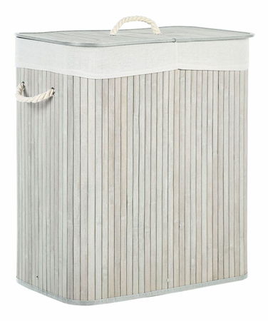 Pokud vás už omrzelo náhodně položené oblečení v koupelně nebo ložnici, tento koš bude pro vás dokonalou volbou. Vysoký koš se dvěma přihrádkami na oddělení prádla má vnitřek vystlaný látkou a praktické víko, díky kterému vypadá úhledně. Minimalistický design je zvýrazněn rukojeťmi, díky kterým lze snadno přenést nebo přemístit. Přírodní bambusové dřevo, ze kterého je vyroben, mu dodává přírodní vzhled, takže se hodí do každého moderního prostoru.
