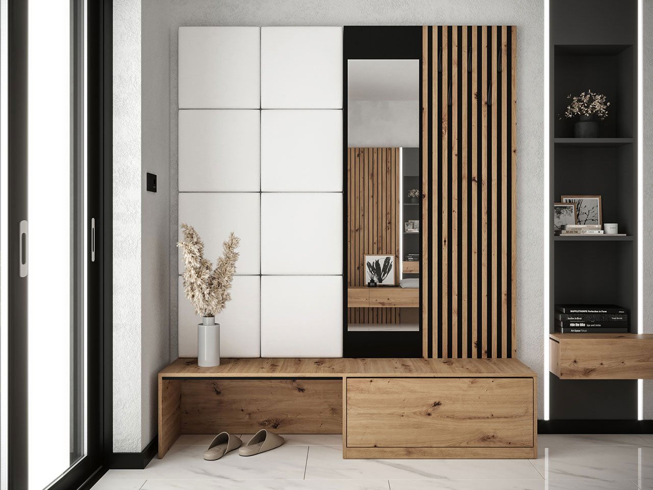 Předsíň Anrolat I (dub artisan + černá + bílá) (se zrcadlem)