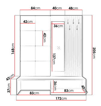 Skříň na boty: šířka: 172 cm, výška: 37 cm, hloubka: 42 cm
