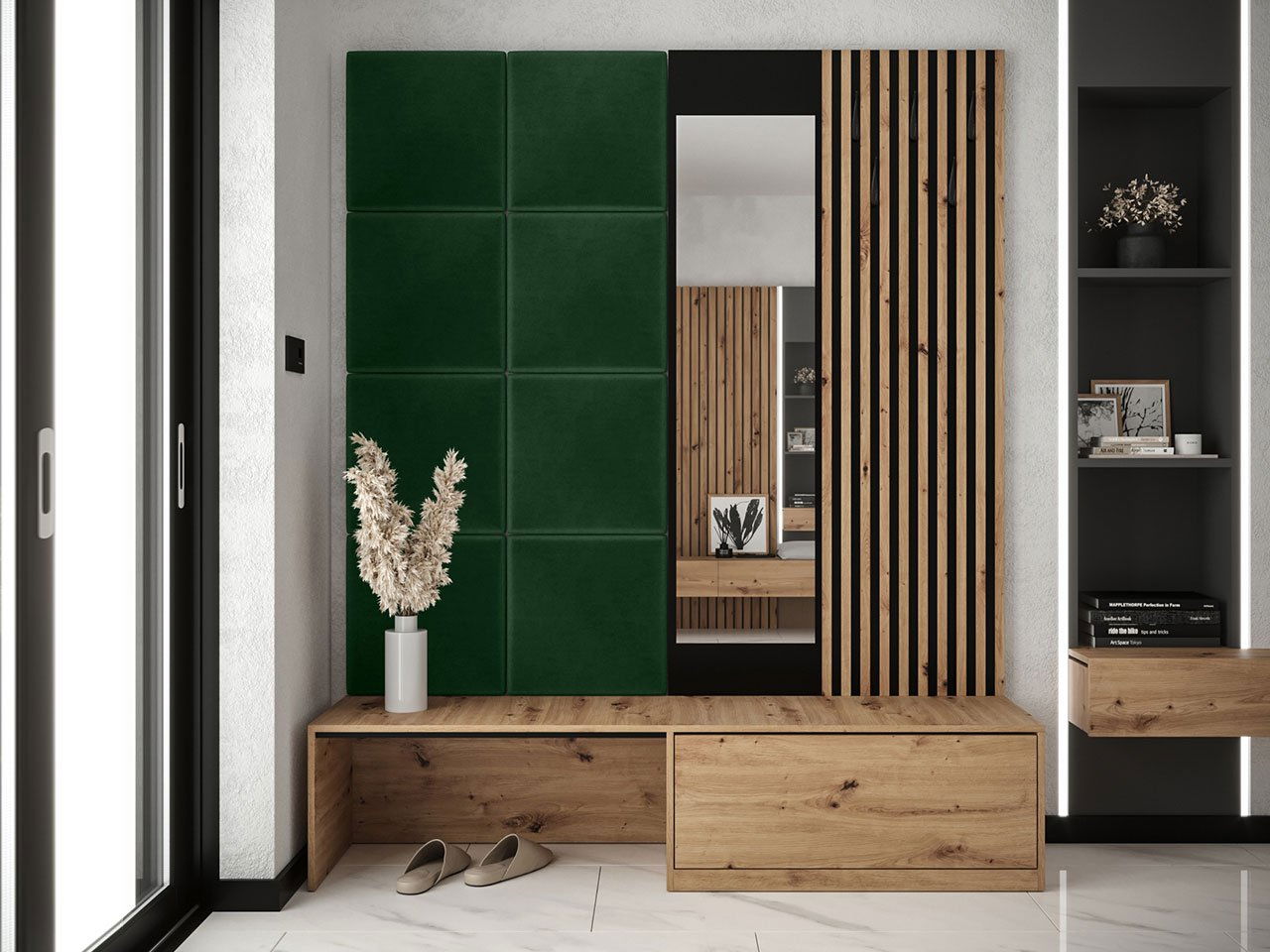 Předsíň Anrolat I (dub artisan + černá + zelená) (se zrcadlem)