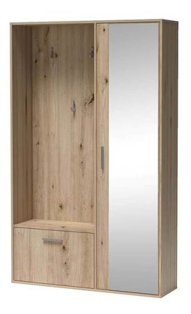 Jedinečná předsíň Bliss se zrcadlem a vestavěnou skříní. Z vnější strany má tři věšáky, které jsou ideální na bundy, kabáty nebo halenky či kabelky. Pod věšákem se nachází skříňka na boty s příčkou pro jednoduchou organizaci. Šatní skříň na levé straně má v sobě dvě police. Jednu horní a jednu spodní, což vám umožní uložit na ně věci, které je nutno umístit na rovný povrch. Moderním řešením je výsuvná ramínková tyč, která zvyšuje jedinečnost a funkčnost celé sestavy. K dispozici je v přírodních dřevěných dekorech.