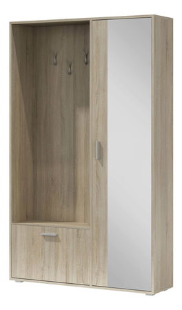 Jedinečná předsíň Bliss se zrcadlem a vestavěnou skříní. Z vnější strany má tři věšáky, které jsou ideální na bundy, kabáty nebo halenky či kabelky. Pod věšákem se nachází skříňka na boty s příčkou pro jednoduchou organizaci. Šatní skříň na levé straně má v sobě dvě police. Jednu horní a jednu spodní, což vám umožní uložit na ně věci, které je nutno umístit na rovný povrch. Moderním řešením je výsuvná ramínková tyč, která zvyšuje jedinečnost a funkčnost celé sestavy. K dispozici je v přírodních dřevěných dekorech.