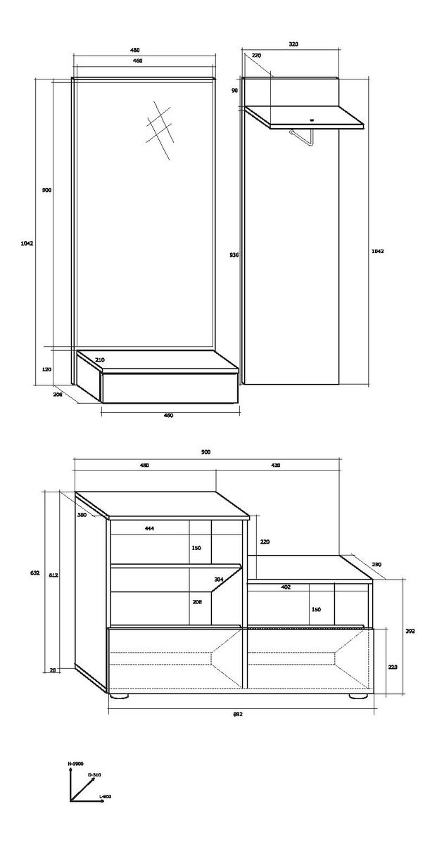 zrcadlo s odkládacím prostorem: 104,2 x 48 x 20,8 cm