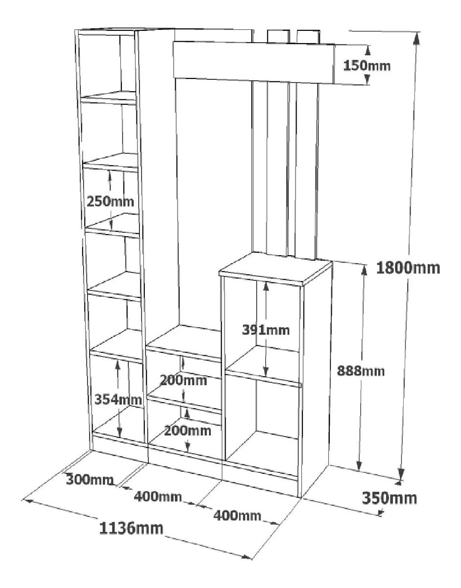 šířka: 113,6 cm výška: 180 cm hloubka: 35 cm