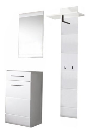Předsíň malých rozměrů je vhodná do menších bytů. Přesto nabízí dostatek prostoru potřebného na zavěšení kabátů či uložení bot. Korpus je vyroben z fóliované DTD a fronty z MDF s extra vysokým bílým leskem HG.