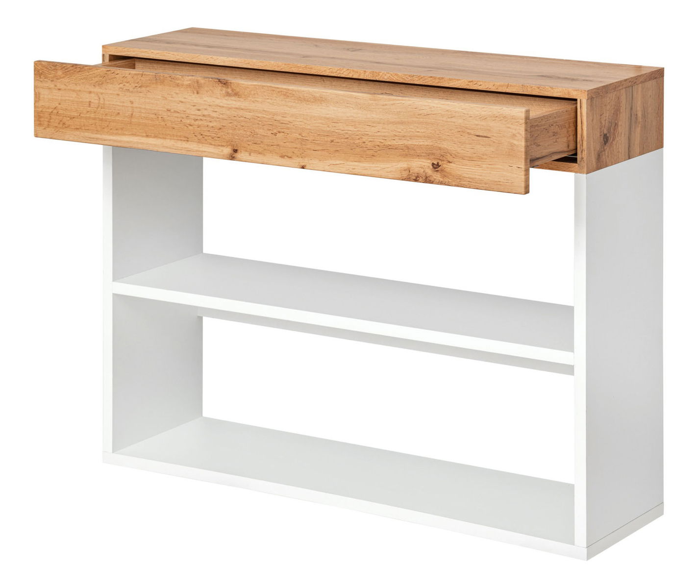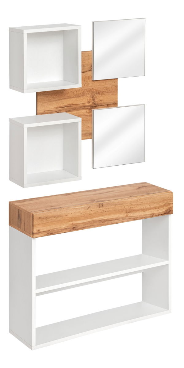 ZobrazitPředsíň plní důležitou roli. Je to první místo, které uvidíte, když vstoupíte do bytu a poslední když z něj odcházíte. Proto si dejte záležet, aby byla zařízená vkusně a prakticky. Moderní design síně Easy EY4 zdůrazňuje čistá bílá barva v kombinaci s naturálním designem dubu wotan. Tato barevná kombinace prosvětlí místnost. Odkládací prostor je tvořen otevřenou poličkou se zásuvkou a dvěma závěsnými otevřenými poličkami. Samozřejmě v předsíni by nemělo chybět zrcadlo, do kterého se můžete před odjezdem podívat a vyrazit spokojeně do nového dne.