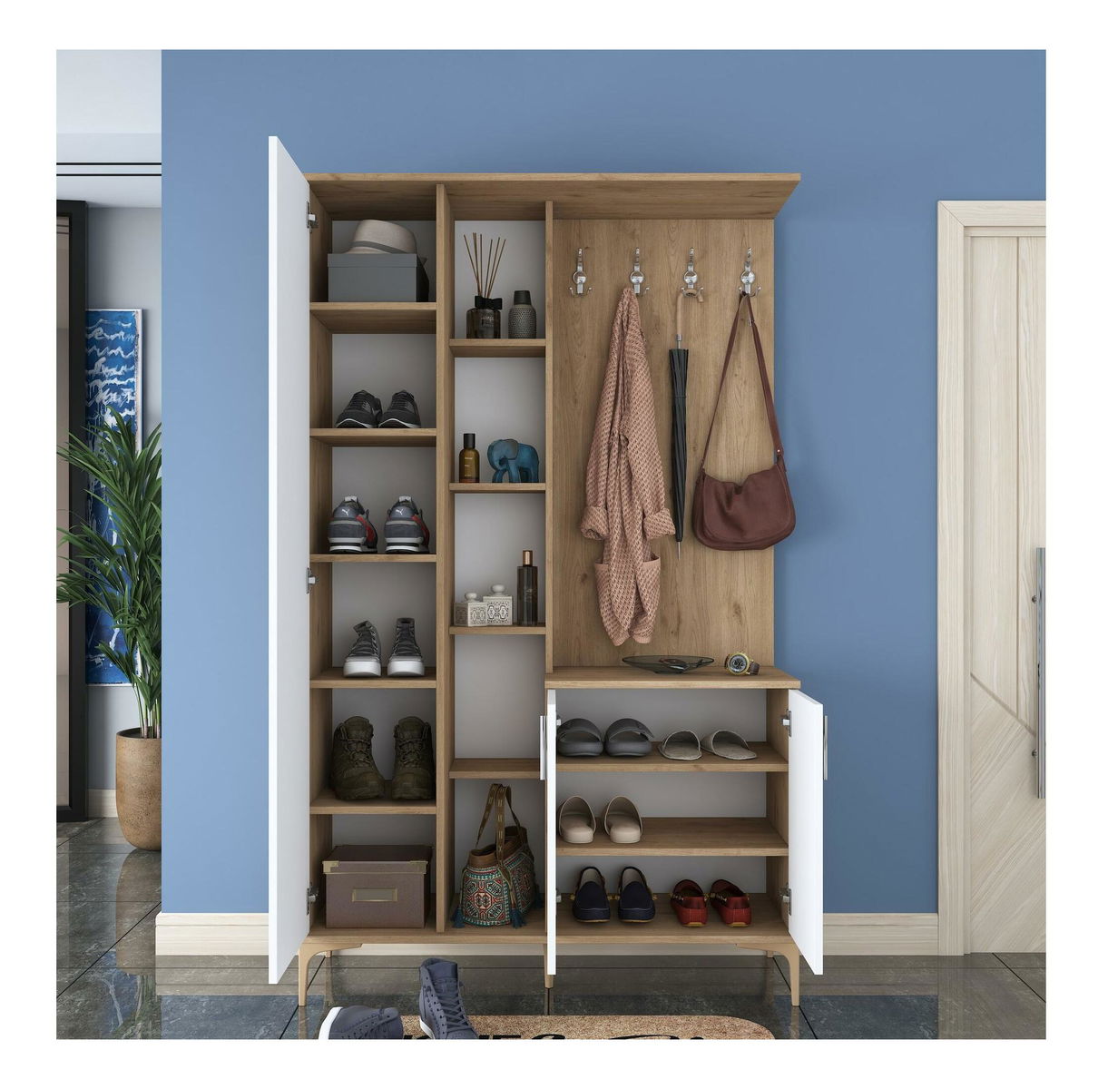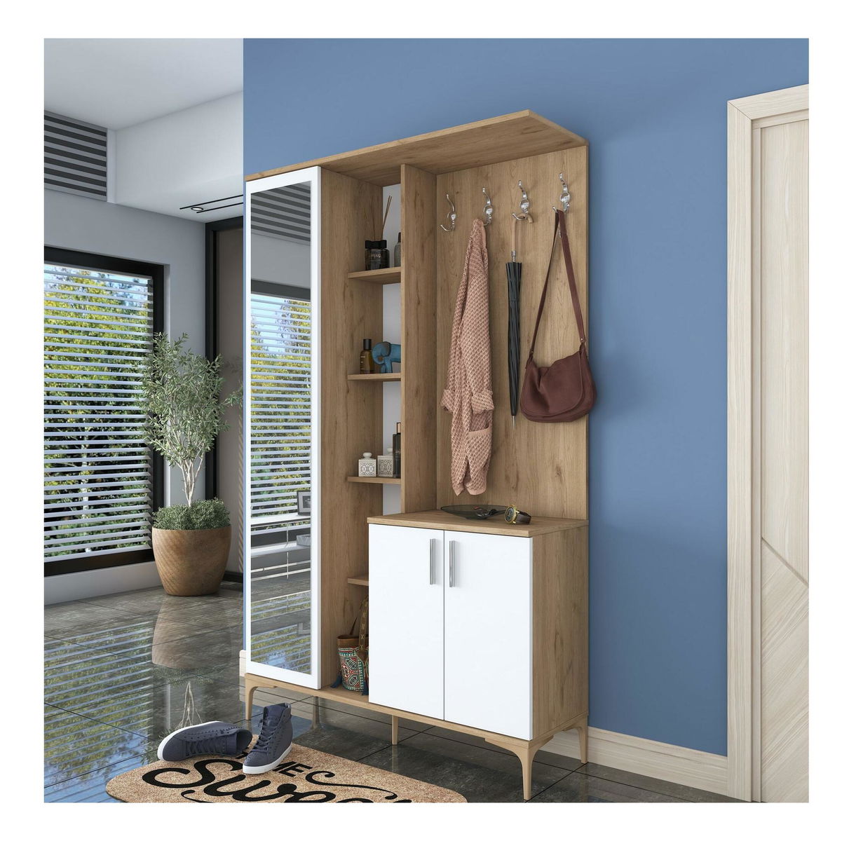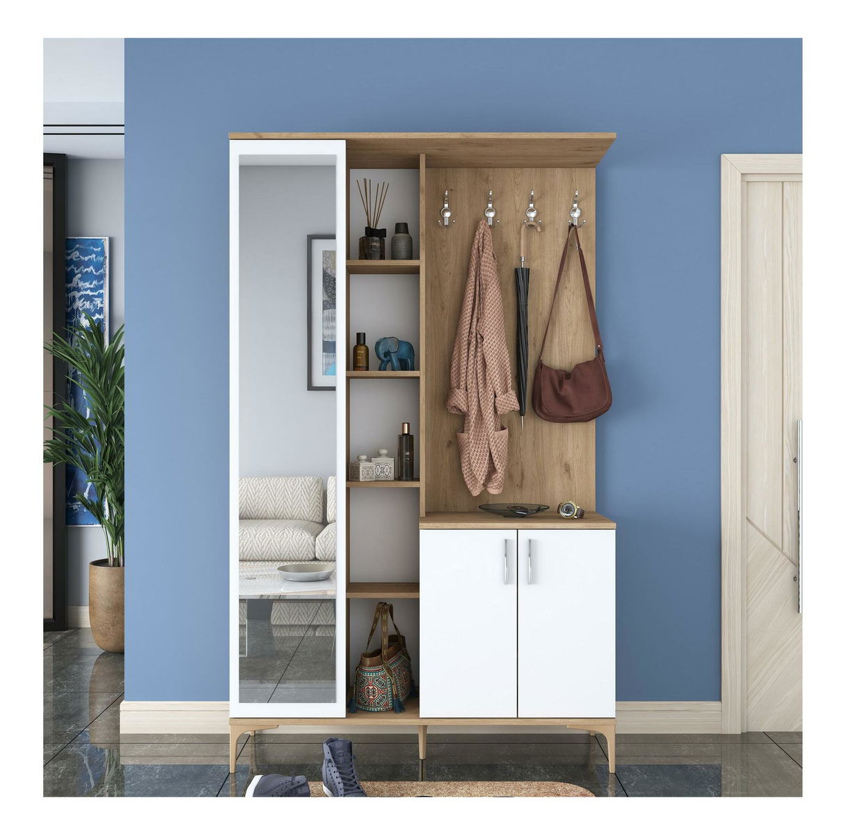 Předsíň Emily 9 (se zrcadlem) (ořech + bílá)