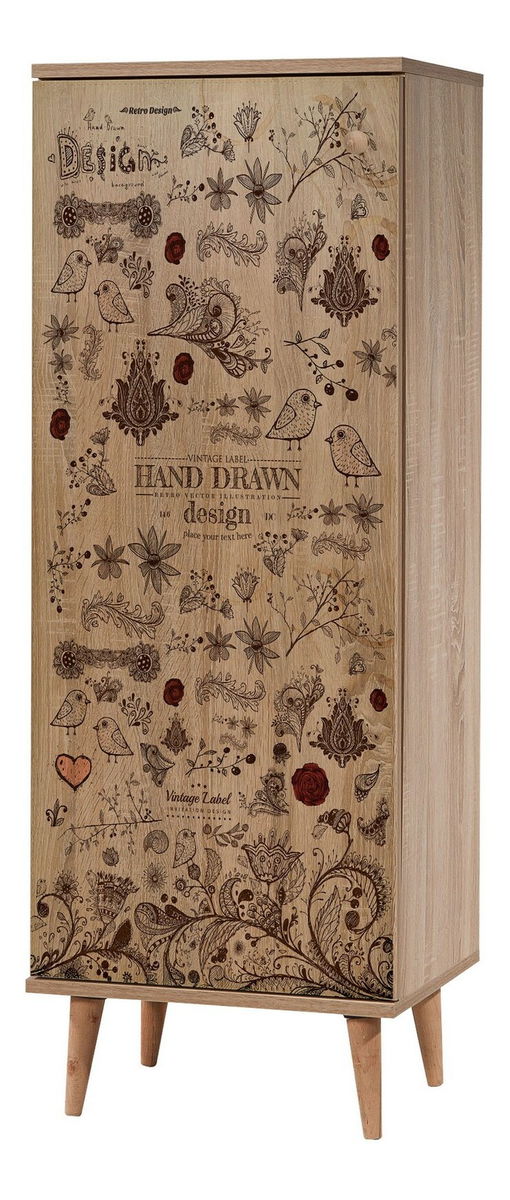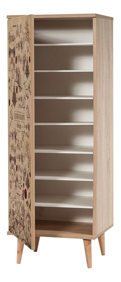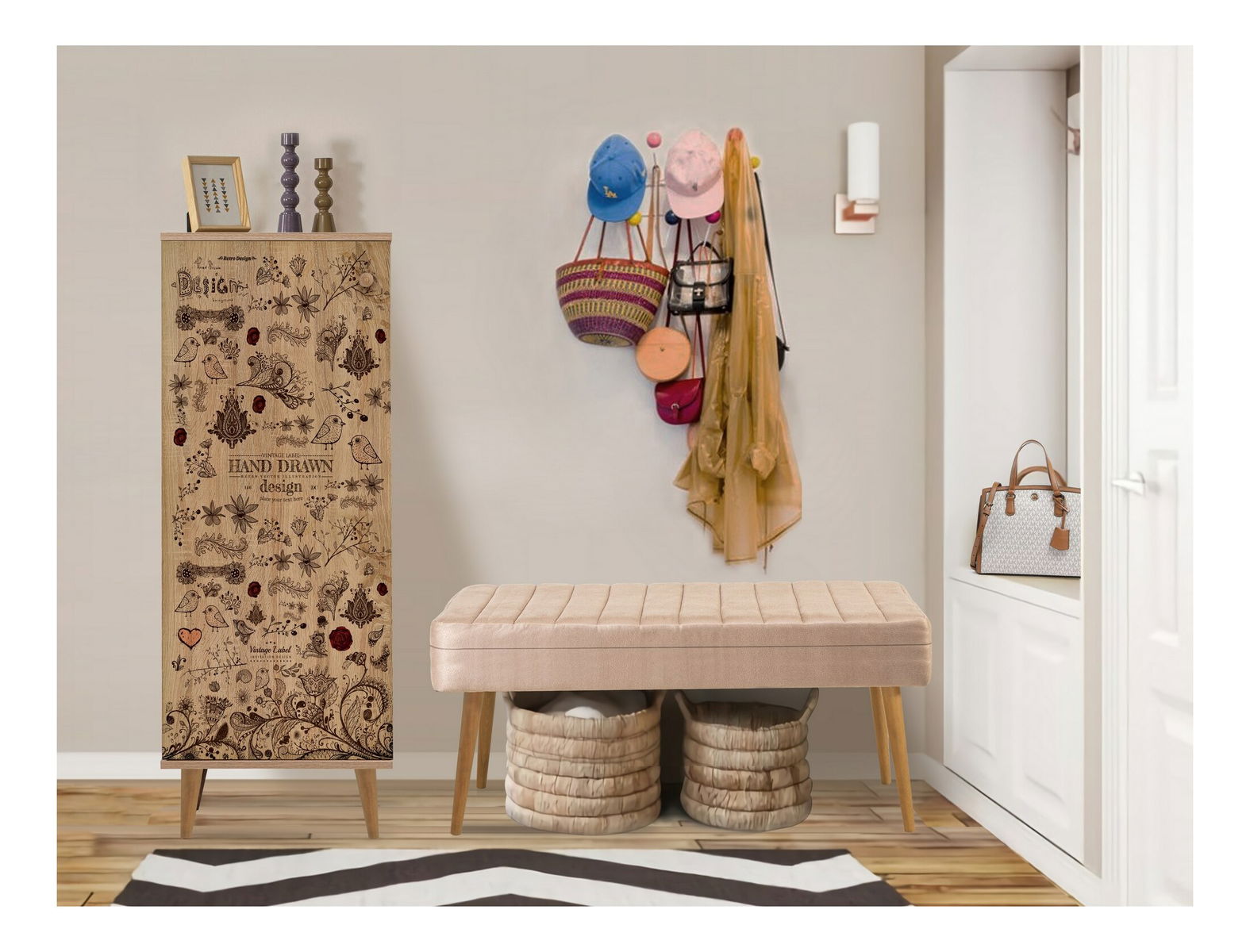 tloušťka: 18 mm, dřevěné nohy, botová skříňka: šířka: 50 cm, výška: 135 cm, hloubka: 38 cm, (1 kus) velikost lavice: šířka: 105 cm, výška: 50 cm, hloubka: 40 cm