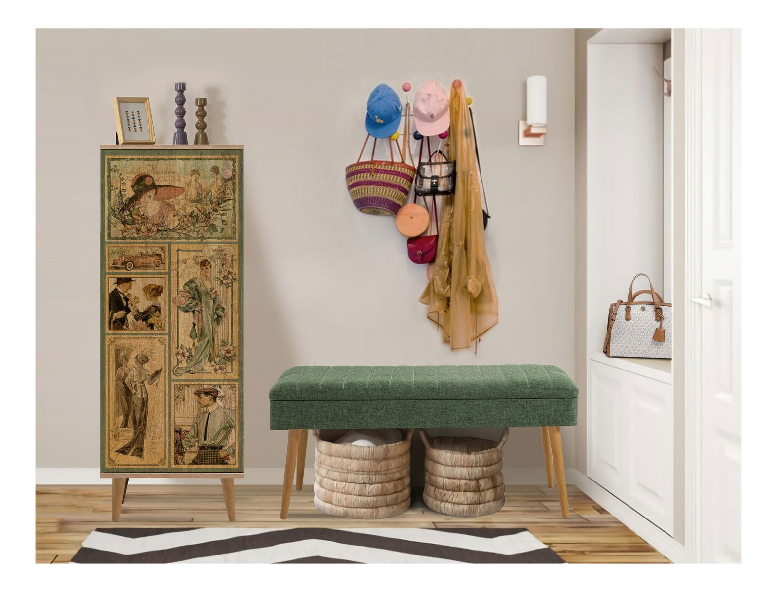 tloušťka: 18 mm, dřevěné nohy, botová skříňka: šířka: 50 cm, výška: 135 cm, hloubka: 38 cm, (1 kus) velikost lavice: šířka: 105 cm, výška: 50 cm, hloubka: 40 cm