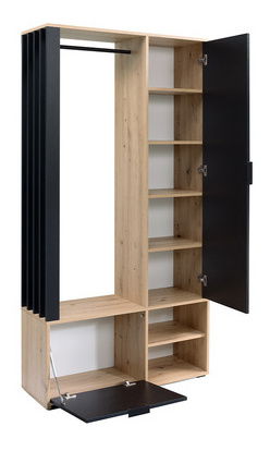 šatní skříň je univerzální - během montáže se zákazník rozhodne, na které straně chce mít šatník a na které straně otevřenou tyč na šaty