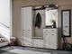 Vytvořte si dobře organizovaný a stylový vstupní prostor s předsíní Hagon v moderním provedení kašmír s černými detaily, moderní vzhled podtrhuje dekorativní potisk pruhů, který spojuje funkčnost s vizuální elegancí. Objevte předsíňové skříňky, které nabízejí více než jen první dojem. Díky promyšlenému vnitřnímu uspořádání získáte bohatý úložný prostor na boty, doplňky, tašky nebo sezónní oblečení. Zásuvky a skříňky s dvířky vám umožní udržovat pořádek a mít vše po ruce, ale zároveň elegantně skryté před zraky návštěv. Ideální řešení pro ty, kteří chtějí, aby jejich předsíň působila upraveně a stylově. Dalším prvkem předsíně je věšákový panel s horní policí a 4 samostatnými věšáky, které poskytují praktický prostor pro každodenní použití. Celkový vzhled předsíně doplňují čalouněné panely, které přinášejí nejen vizuální zjemnění, ale také pohodlí při obouvání. Efektivní součástí předsíně je panel se zrcadlem a horní policí. Poznámka: předsíň neobsahuje podsedák.
