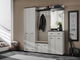 Vytvořte si dobře organizovaný a stylový vstupní prostor s předsíní Hagon v moderním provedení kašmír s černými detaily, moderní vzhled podtrhuje dekorativní potisk pruhů, který spojuje funkčnost s vizuální elegancí. Objevte předsíňové skříňky, které nabízejí více než jen první dojem. Díky promyšlenému vnitřnímu uspořádání získáte bohatý úložný prostor na boty, doplňky, tašky nebo sezónní oblečení. Zásuvky a skříňky s dvířky vám umožní udržovat pořádek a mít vše po ruce, ale zároveň elegantně skryté před zraky návštěv. Ideální řešení pro ty, kteří chtějí, aby jejich předsíň působila upraveně a stylově. Dalším prvkem předsíně je věšákový panel s horní policí a 4 samostatnými věšáky, které poskytují praktický prostor pro každodenní použití. Celkový vzhled předsíně doplňují čalouněné panely, které přinášejí nejen vizuální zjemnění, ale také pohodlí při obouvání. Efektivní součástí předsíně je panel se zrcadlem a horní policí. Poznámka: předsíň obsahuje podsedák.