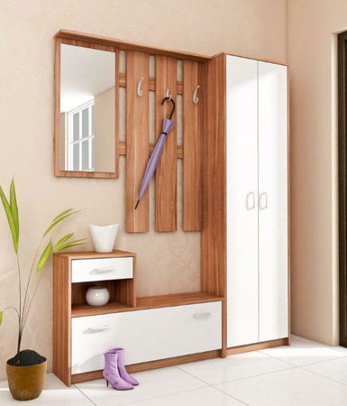 Praktická prediseň Iza v barvě švestka v kombinaci s bílou. Obsahuje policovou skříň (4 police), věšákový panel, zrcadlo a botník s praktickou vyvýšenou částí se zásuvkou.