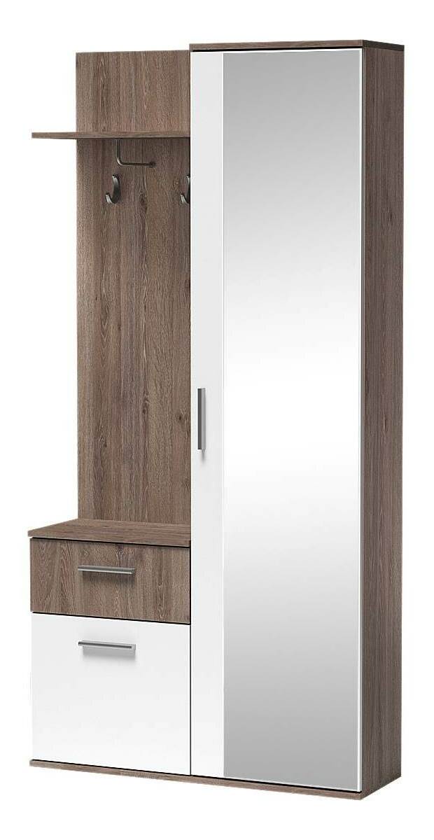 ZobrazitVelice praktická a prostorná nábytková sestava do předsíně Luxor. Šatní skříň má prostor pro zavěšení bund i pro uložení bot. Kromě toho je vybavena praktickým šuplíkem, do kterého můžete uložit šály nebo rukavice, případně klíče od domu. Praktické místo na takové předměty, na které potřebujeme pamatovat před odchodem z bytu. Šatní skříň má zrcadlo, ve kterém se můžeme na sebe podívat. Kromě toho má šatník poličky, kam si můžeme odložit například klobouky a čepice. Velkou výhodou šatníku je, že má univerzální stranu, kde je namontována zrcadlová část, může být buď vpravo nebo vlevo.