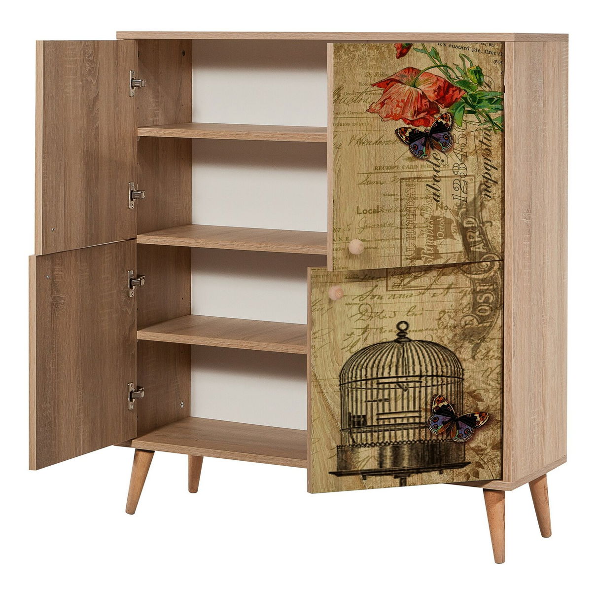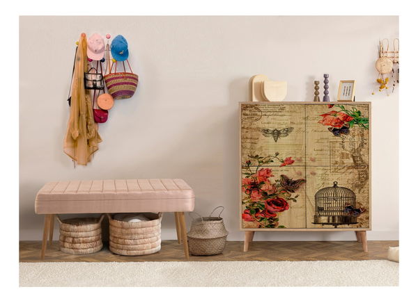 tloušťka: 18 mm, dřevěné nohy, botová skříňka: šířka: 95 cm, výška: 111 cm, hloubka: 36 cm, (1 kus) velikost lavice: šířka: 105 cm, výška: 49 cm, hloubka: 40 cm