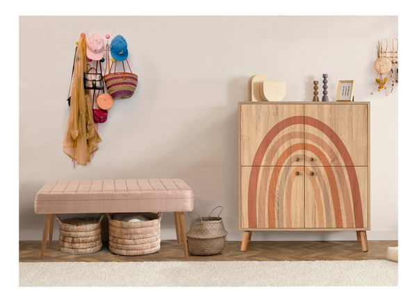 tloušťka: 18 mm, dřevěné nohy, botová skříňka: šířka: 95 cm, výška: 111 cm, hloubka: 36 cm, (1 kus) velikost lavice: šířka: 105 cm, výška: 49 cm, hloubka: 40 cm