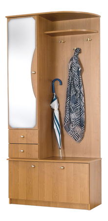 Zařiďte si předsíň hotovou předsíňovou sestavou Mark. Poskytne Vám vše, co ve správné předsíni budete potřebovat - zrcadlo, dvě menší zásuvky na módní doplňky, poličku na odkládání klobouků a čepic, dvě skříňky ve spodní části a věšáky na zavěšení kabátů, větrovek a deštníků. Předsíň je vyrobena z laminované dřevotřísky. Barevné provedení lze vhodně nakombinovat is jinými prvky a vytvoříte tak příjemný harmonický prostor.