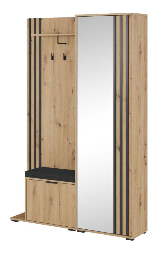 ZobrazitPředsíň Nelliana (dub artisan) s polštářem výšky 192 cm a hloubky 40 cm je moderní předsíní, která se skvěle hodí do jakékoli haly nebo předsíni Vyrobili jsme ji z kvalitní laminované dřevotřískové desky a doplnili ji ozdobnými lamelami. a okraje jsou ošetřeny ABS hranami. K předsíni patří i polštář o rozměrech 39x5x60 cm, který je naplněn pěnou T2542. Barevné provedení polštáře je Kronos 7. S touto předsíní získáte nejen moderní nábytek, ale také praktické úložné prostory pro vaše věci.
