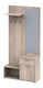 Praktická předsíňová sestava je kvalitní slovenský výrobek, který se skládá z odkládací poličky, věšáky na oblečení, úzkého vysokého zrcadla, zásuvky, skříňky a otevřené skříni na boty. Produkt je vyroben z kvalitního lamina o tloušťce 1,6 cm v provedení dub sonoma.