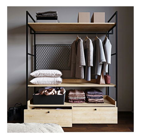 tloušťka: 18 mm, kovové nohy, s elektrostatickým práškovým nástřikem šířka: 150 cm, výška: 180 cm, hloubka: 42 cm, velikost zásuvky: šířka: 75 cm, výška: 35 cm, hloubka: 42 cm